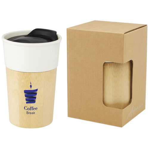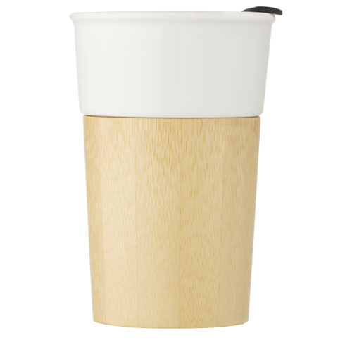 Elegante taza de porcelana con exterior de bambú orgánico que proporciona un aspecto natural y un agarre cómodo. La taza «Pereira» cuenta con una tapa deslizante de presión a prueba de fugas y no contiene BPA. Capacidad de 320 ml. Se recomienda lavarla a mano. Se presenta en una caja de regalo de cartón reciclado.