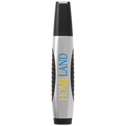 Un destornillador compacto con puntas de estrella grande y pequeña, puntas planas grande y pequeña y una luz LED con interruptor de encendido/apagado. Pila incluida.