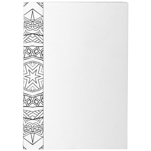Libreta de tamaño A5, incluye 40 hojas de color blanco (100g/m2). Tiene hojas para colorear y hojas de papel rayado para notas.