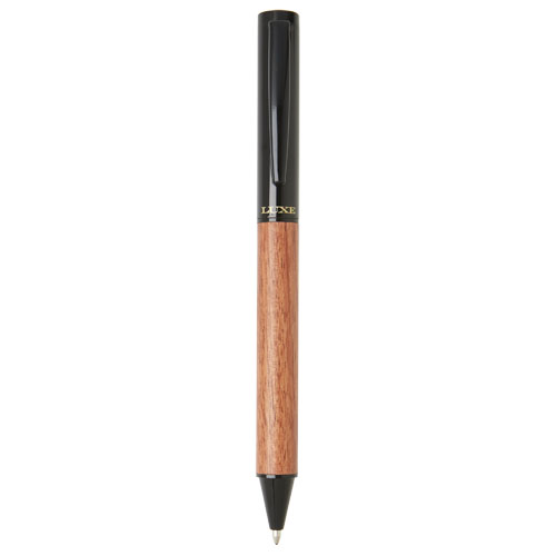 Bolígrafo giratorio con diseño exclusivo y cuerpo inferior de madera. Incluye una carga de tinta negra y está empaquetado en una caja de regalo «Luxe».
