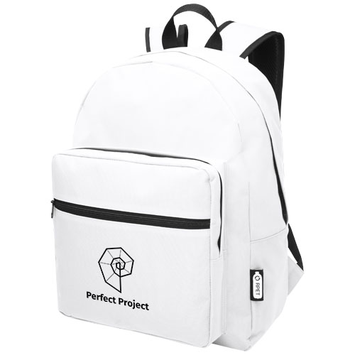 Resistente mochila de plástico 100 % reciclado, con certificado GRS que contribuye a la reducción de los desechos plásticos. Cuenta con correas de hombro ajustables, dos compartimentos con cremallera y un bolsillo frontal con cremallera. Para fabricar esta bolsa se reciclaron aproximadamente 15 botellas.