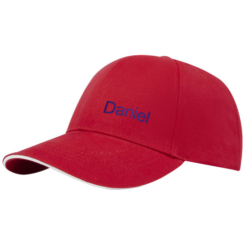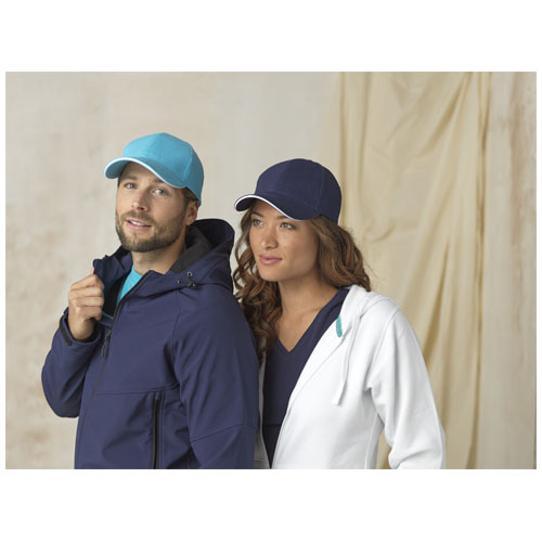Gorra promocional de material sostenible. Visera precurvada con ribete. Ojales de ventilación bordados. Cierre de hebilla metálica de triple deslizamiento. Circunferencia del casco 58 cms.